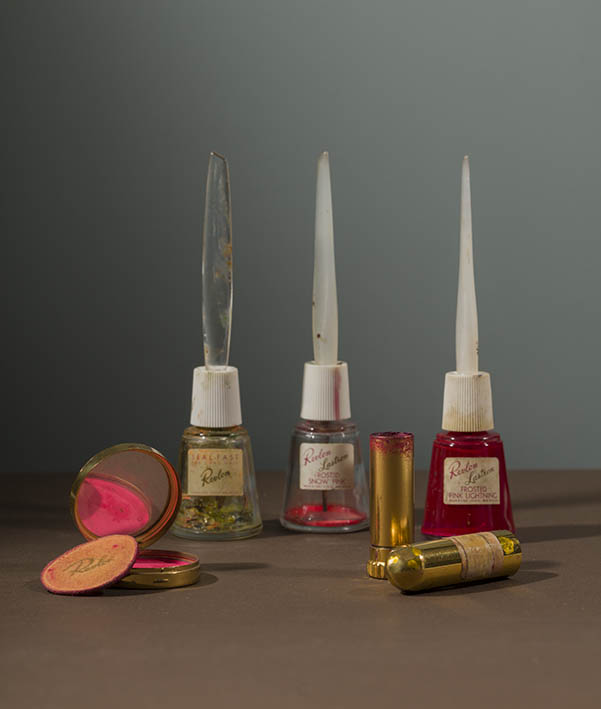 Frida’s makeup: lipstick, nail polish and files, eyeliner, blush